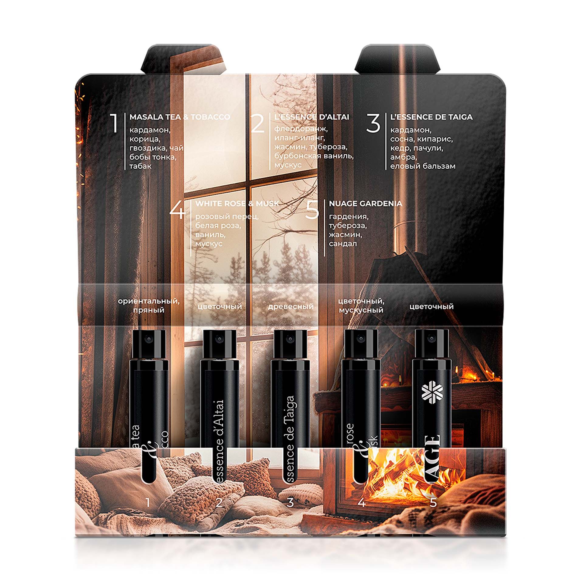 Әр жиынтықта суық мезгілмен тамаша үйлесетін бес хош иіс бар.