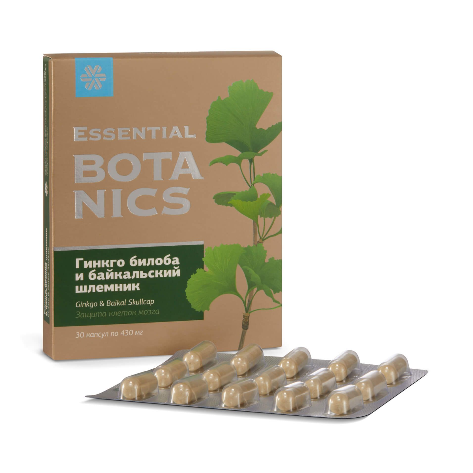 Экстракт шлемника байкальского, аскорбиновая кислота, экстракт гинкго билоба (24% гинкгофлавонов), аскорбилпальмитат, экстракт готу колы, витамин Е ацетат, витамин А ацетат.