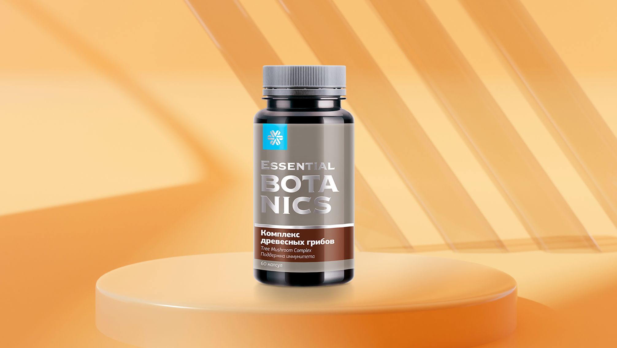 Экстракт гриба чаги, экстракт шиитаке, экстракт мейтаке, экстракт рейши, микрокристаллическая целлюлоза (наполнитель), магния стеарат (агент антислеживающий). Оболочка капсулы: желатин говяжий, оксиды железа (краситель), индигокармин (краситель).